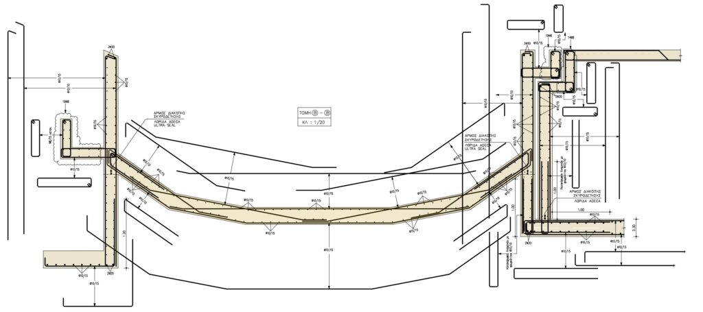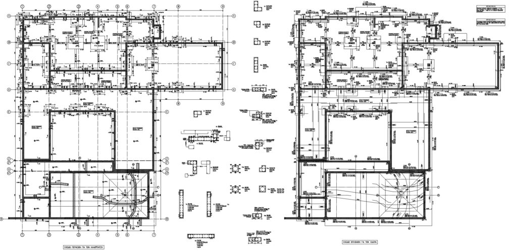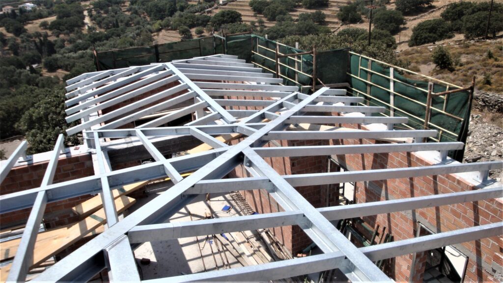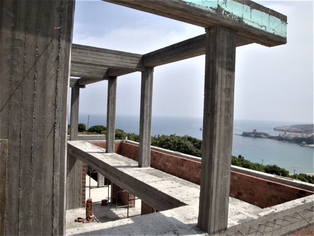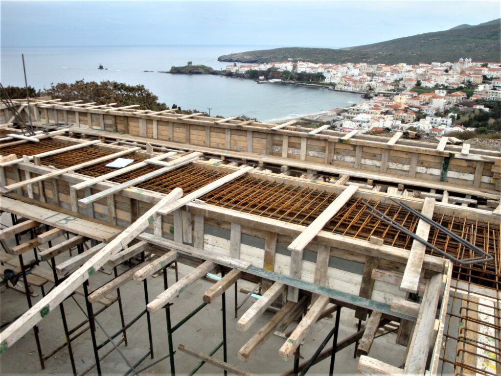 Η μελέτη αφορά την ανέγερση νέας διόροφης εξοχικής κατοικίας με υπόγειο και πισίνα, στη θέση Λουριά στην Άνδρο. Ο Φέρων Οργανισμός του κτιρίου κατασκευάστηκε με οπλισμένο σκυρόδεμα, η δε στέγη με μεταλλικό σκελετό. Αξιοσημείωτο είναι ότι για αρχιτεκτονικούς λόγους (μεγάλοι Ισόγειοι χώροι υποδοχής) στην οροφή Ισογείου διατάσσεται δοκός μήκους 12.0 μ., η οποία φέρει δύο φυτευτά υποστυλώματα (βλ. φωτογραφίες).