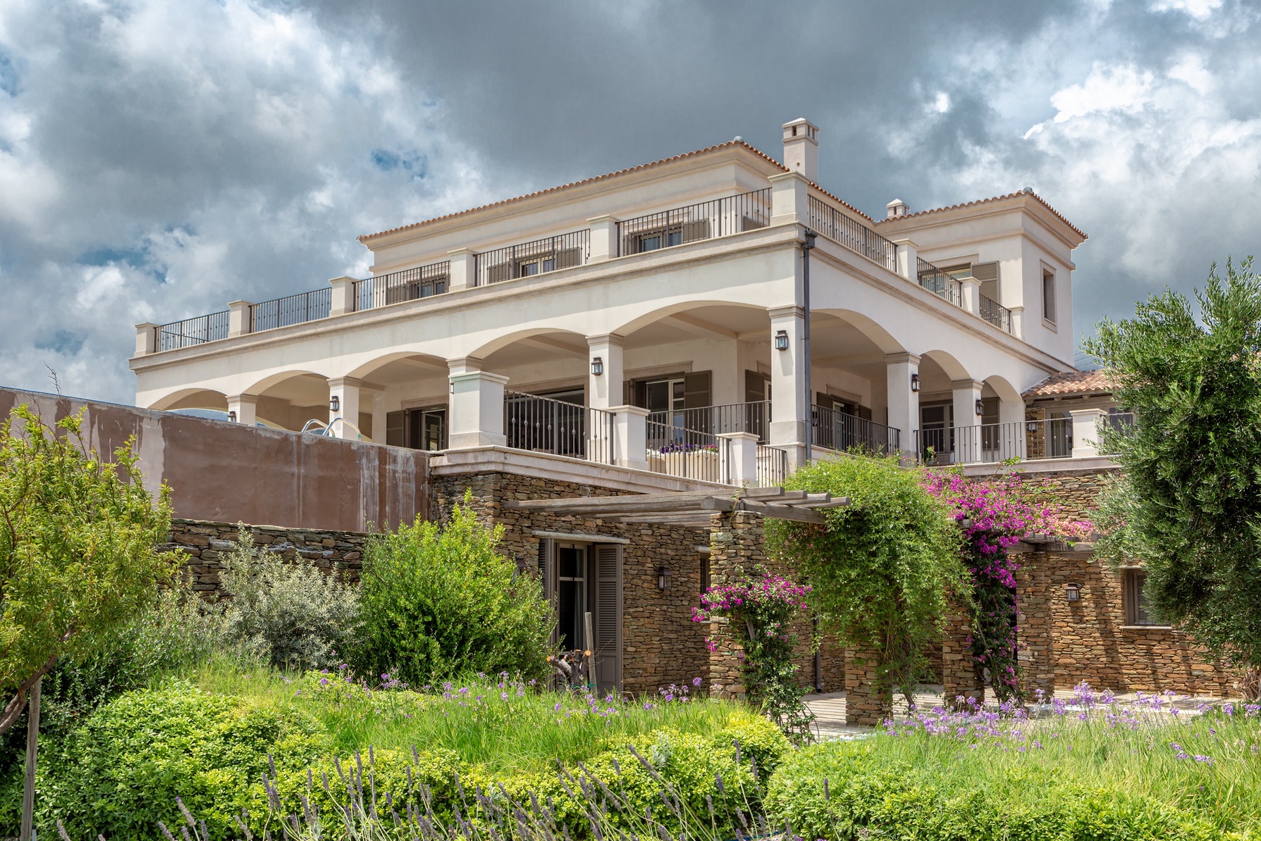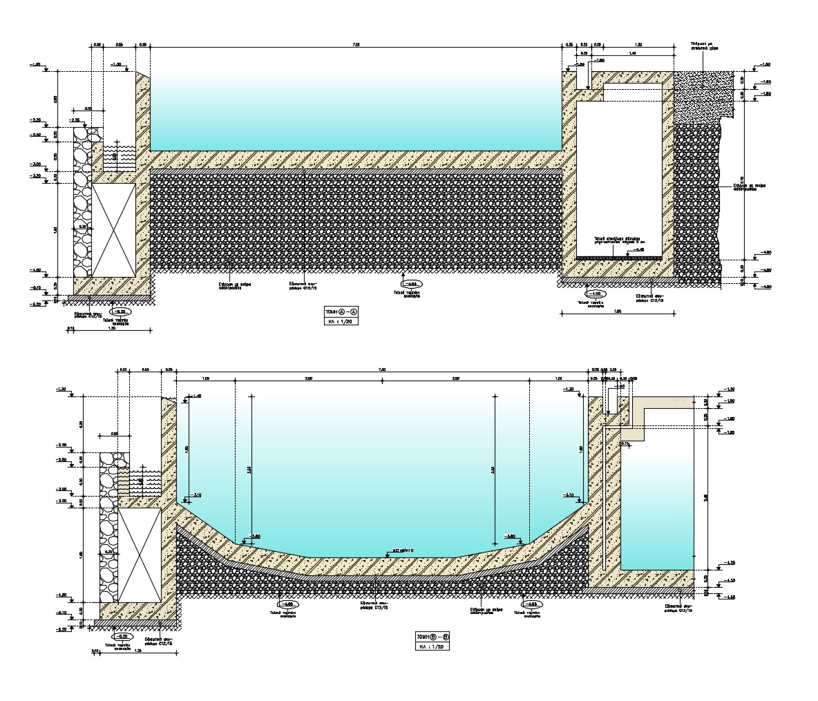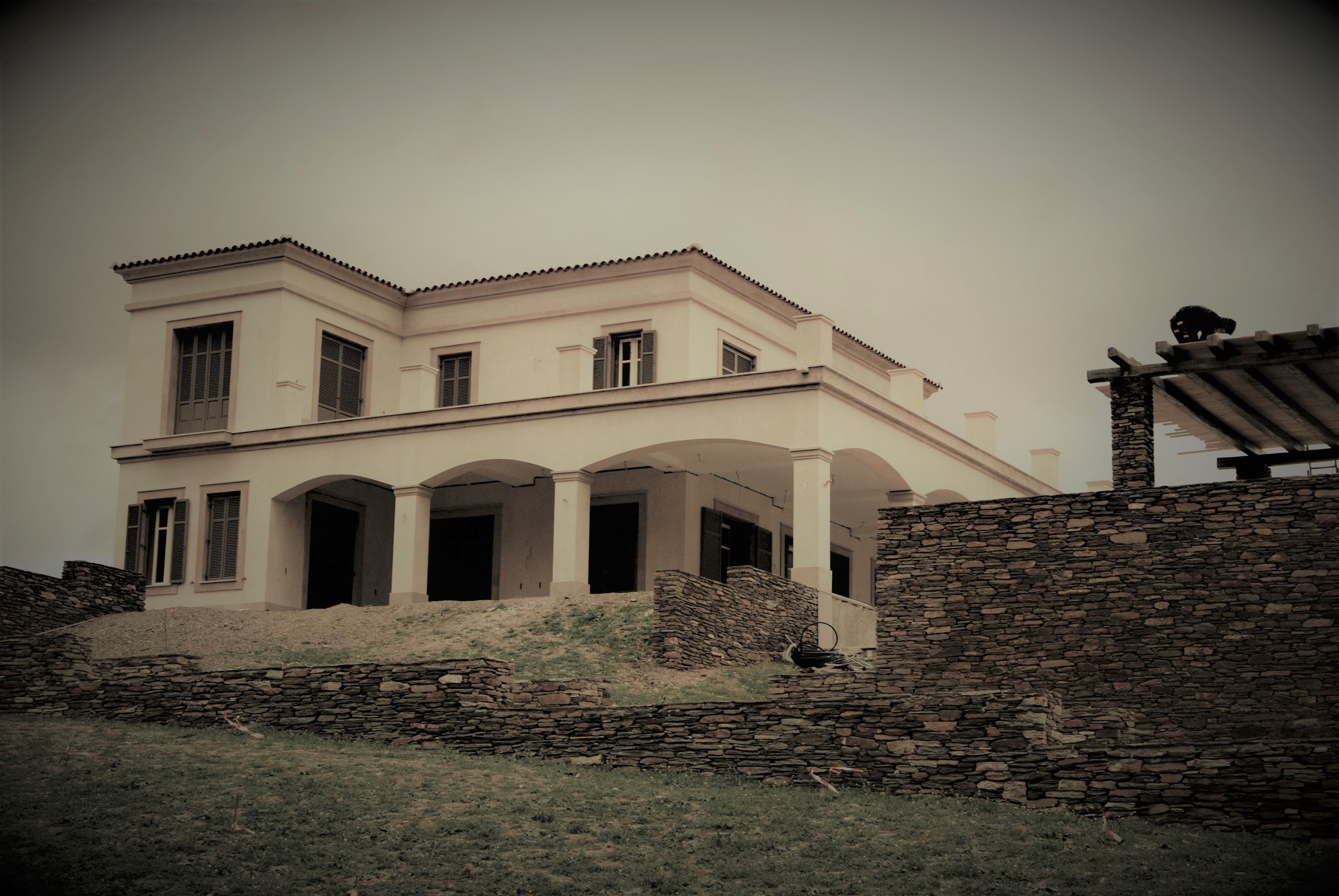 Η μελέτη αφορά την ανέγερση νέας διόροφης εξοχικής κατοικίας με υπόγειο και πισίνα, στη θέση Λουριά στην Άνδρο. Ο Φέρων Οργανισμός του κτιρίου κατασκευάστηκε με οπλισμένο σκυρόδεμα, η δε στέγη με μεταλλικό σκελετό. Αξιοσημείωτο είναι ότι για αρχιτεκτονικούς λόγους (μεγάλοι Ισόγειοι χώροι υποδοχής) στην οροφή Ισογείου διατάσσεται δοκός μήκους 12.0 μ., η οποία φέρει δύο φυτευτά υποστυλώματα (βλ. φωτογραφίες).