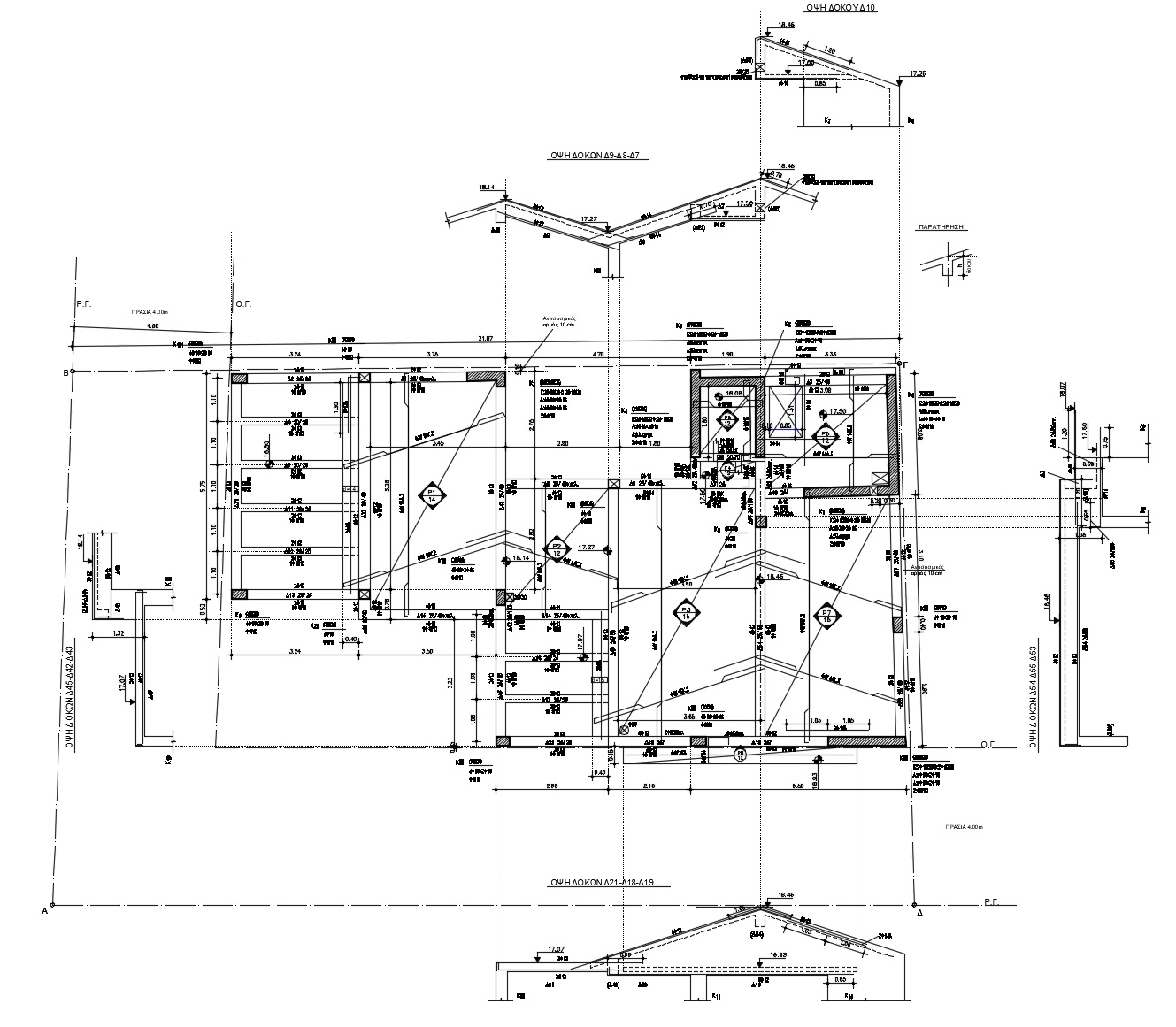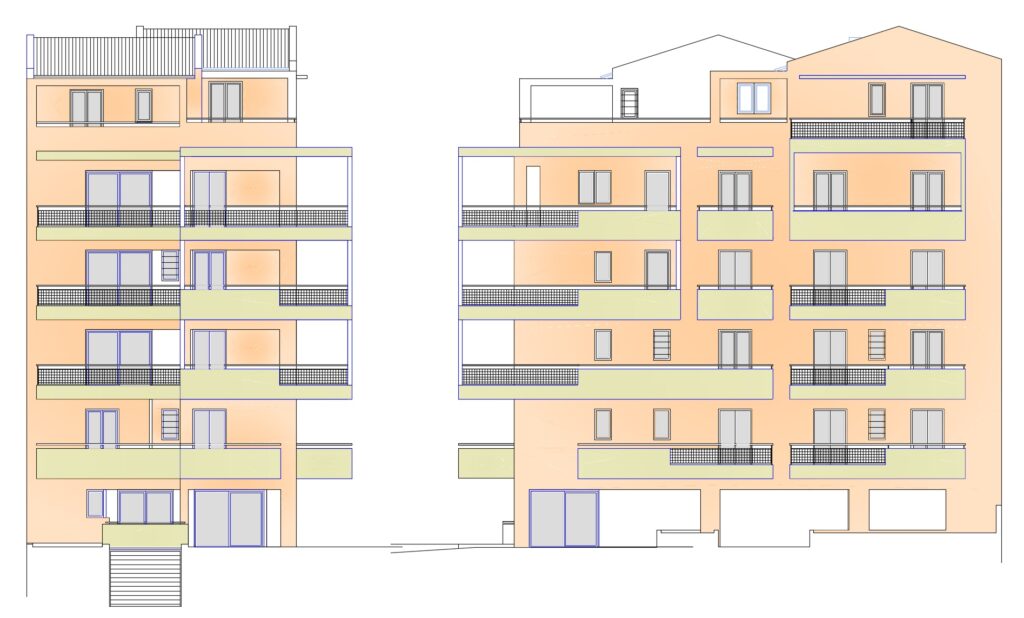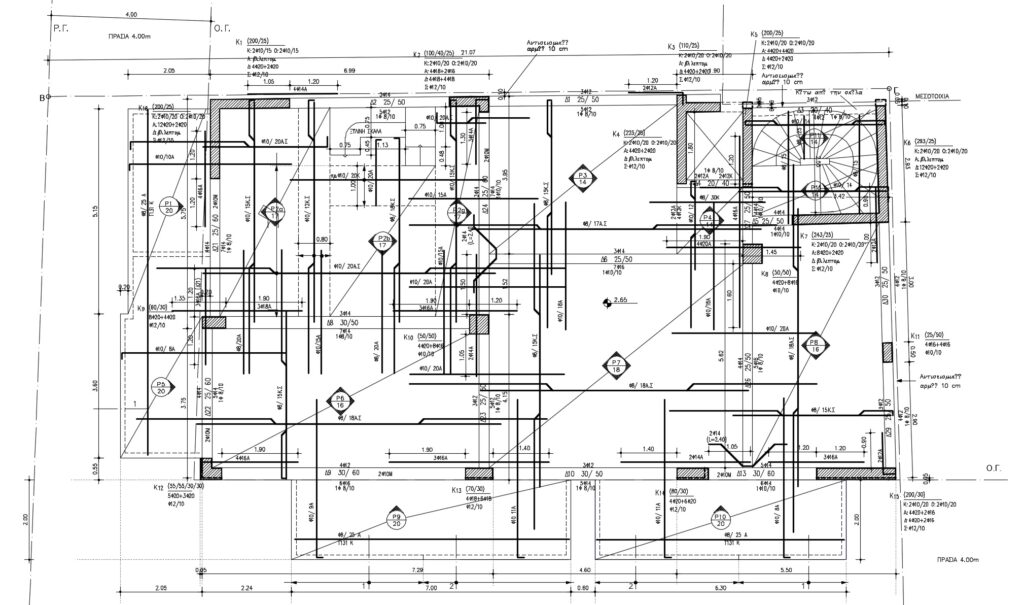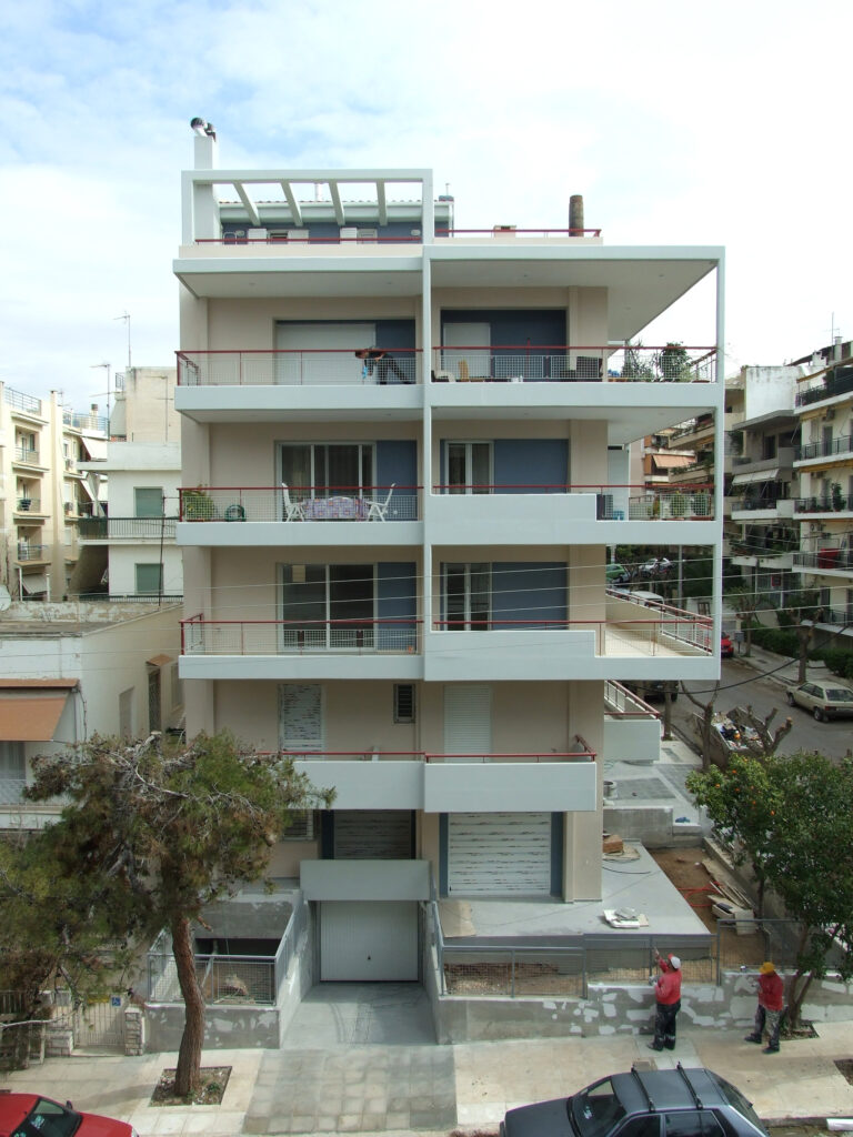 Η μελέτη αφορά την ανέγερση του Φέροντος Οργανισμού από οπλισμένο σκυρόδεμα πενταόροφης πολυκατοικίας με πυλωτή και υπόγειο, στα Ανω Πατήσια Αθηνών. Η θεμελίωση του κτιρίου έγινε με μεμονωμένα πέδιλα και συνδετηρίες δοκούς. Προβλέφθηκαν οι κατάλληλοι αντισεισμικοί αρμοί σε σχέση με τα όμορα κατασκευασμένα κτίρια.