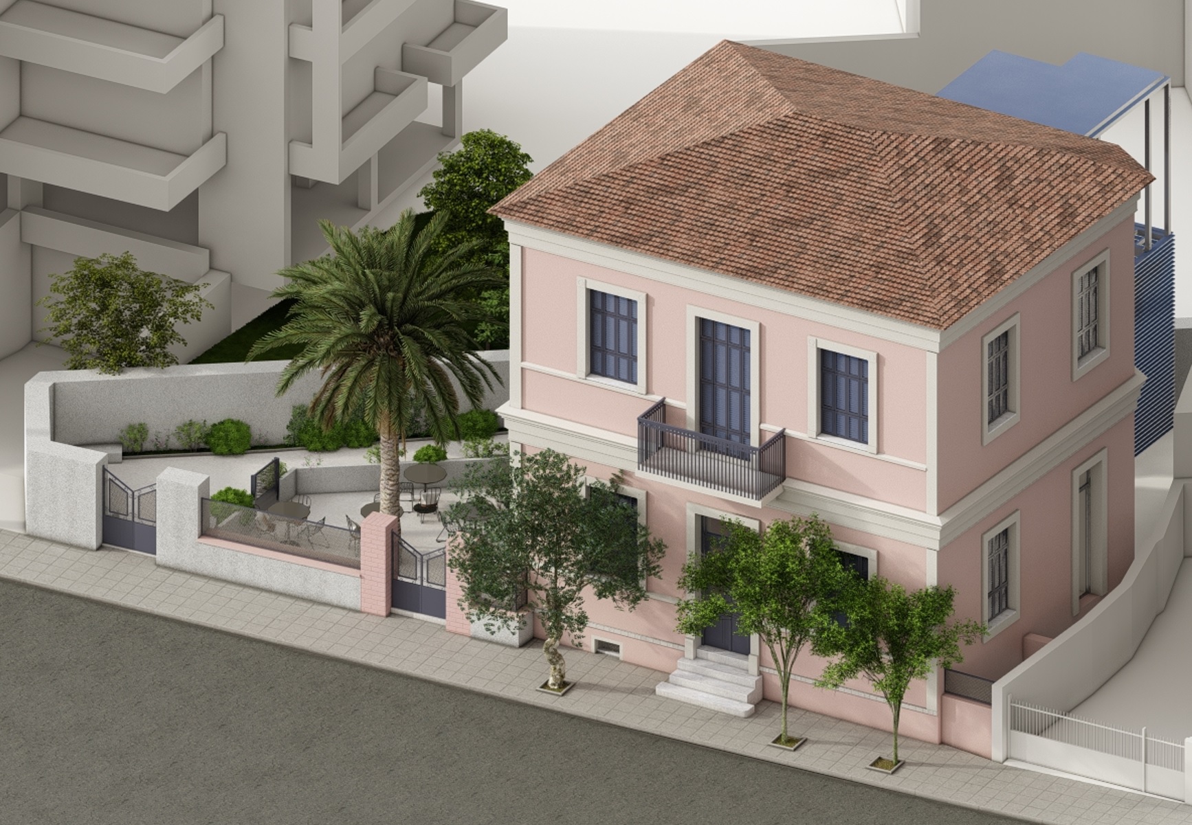Μεταλλικός φορέας προβλέπεται για την κατασκευή ανεξάρτητου εξωτερικού κλιμακοστασίου και ανελκυστήρα, που θα διασφαλίζει την ατομική πρόσβαση στον Α’ Οροφο αλλά και στους νέους Υπόγειους χώρους.