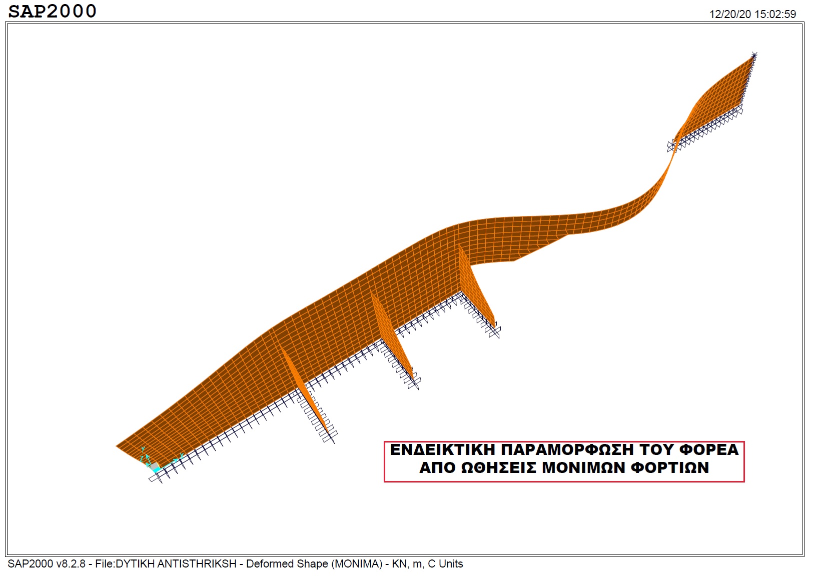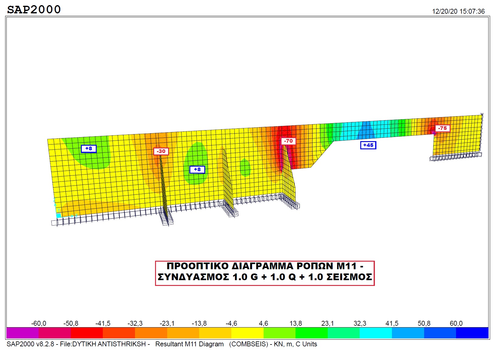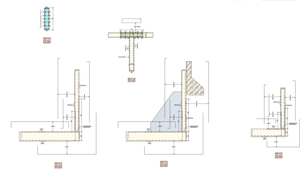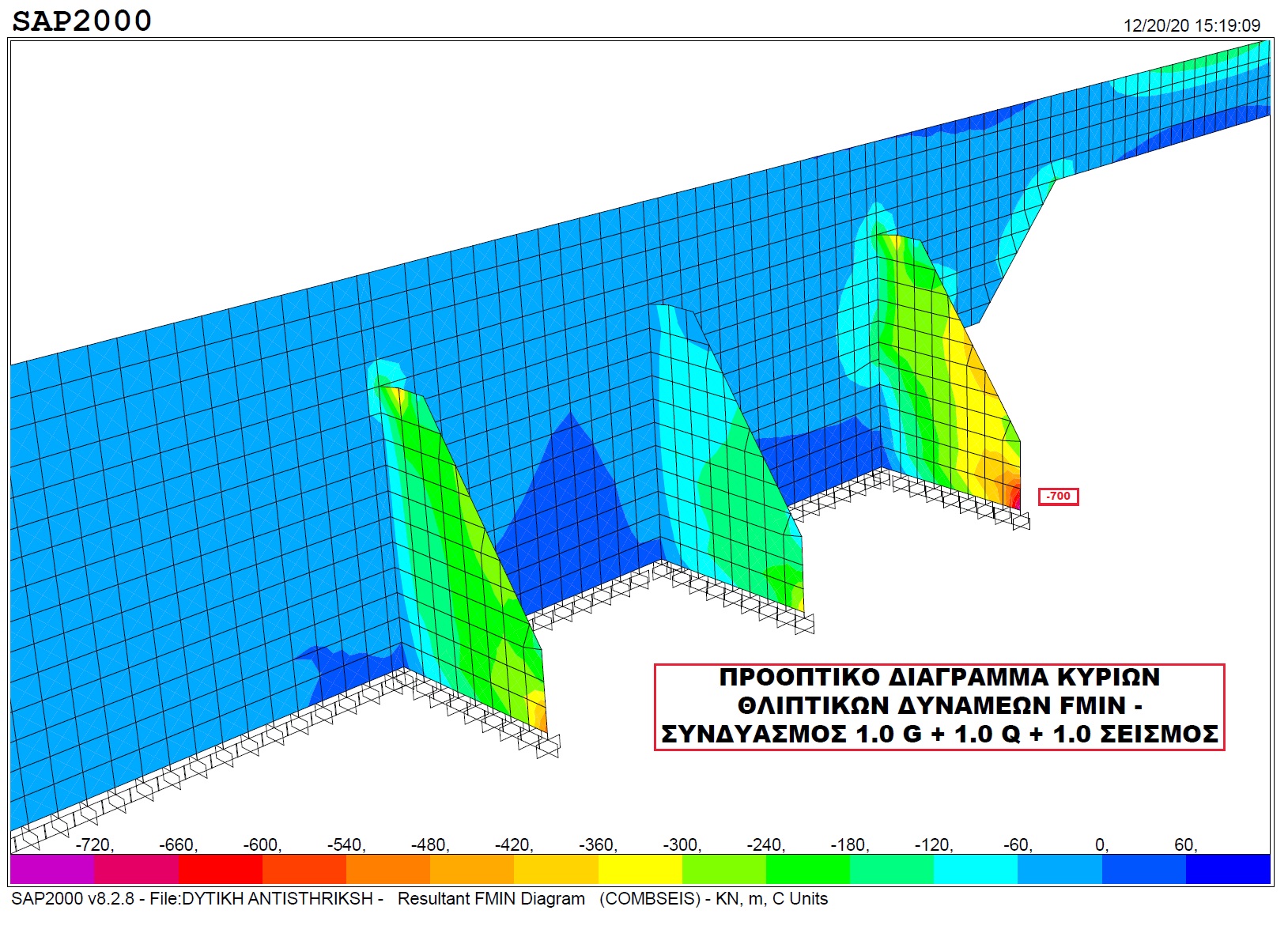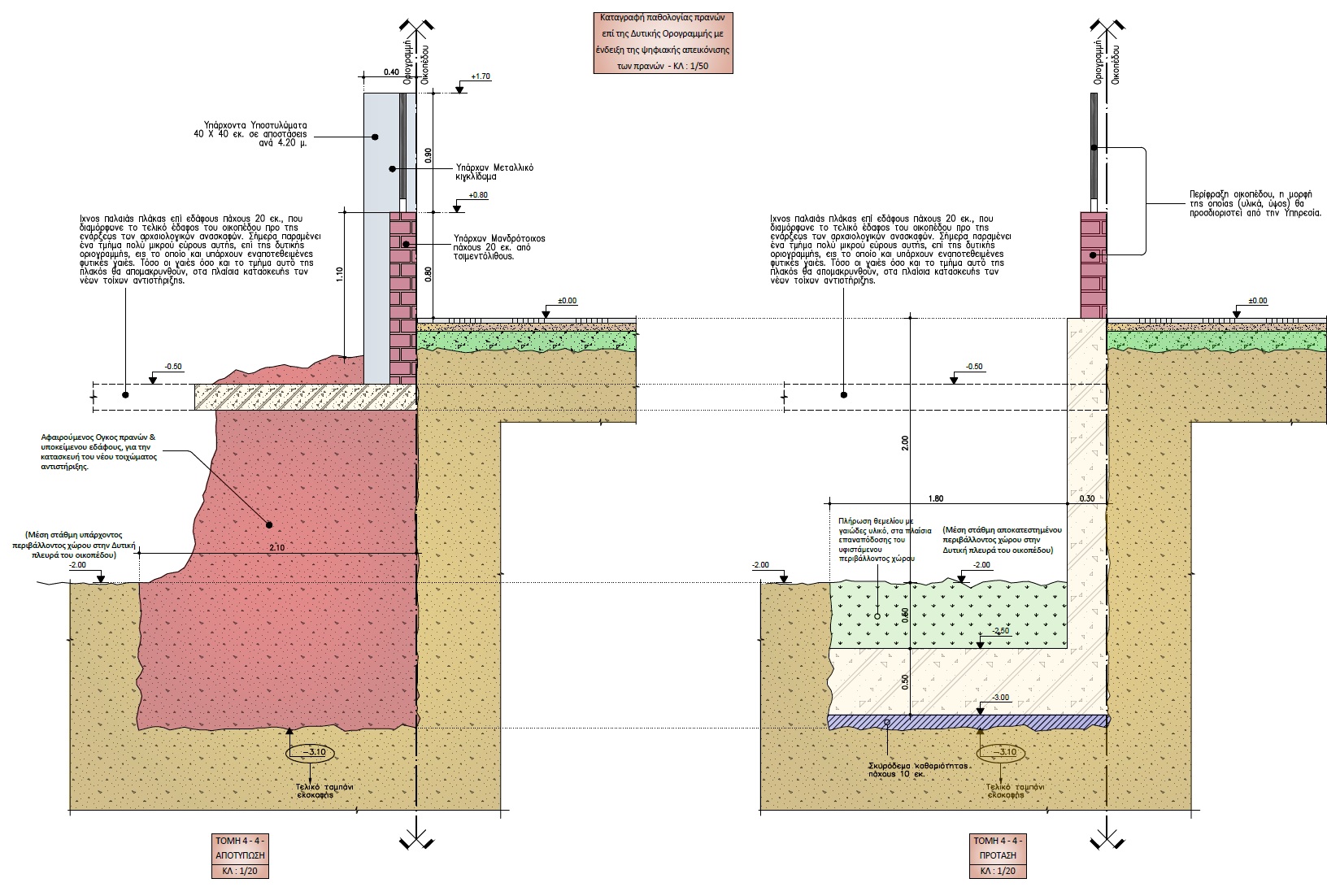 Σε οικόπεδο φερομένης ιδιοκτησίας ΕΦΚΑ στην Ελευσίνα, μετά από ανασκαφικές εργασίες της δεκαετίας ’70, αποκαλύφθηκε τμήμα της Ιεράς Οδού καθώς και διάσπαρτες Αρχαιότητες. Με την συγκεκριμένη μελέτη στατικής επάρκειας και αντιστήριξης πρανών, καταγράφεται η παθολογία των πρανών της τότε εκσκαφής ανά πλευρά του οικοπέδου, αναπτύσσεται η εκάστοτε επιλεχθείσα πρόταση αντιστήριξης μετά των προϋποθέσεων εφαρμογής της και επιλύεται – διαστασιολογείται η επιλεγμένη πρόταση αντιστήριξης. Συγκεκριμένος τοίχος αντιστήριξης μεγάλου ύψους, λόγω των εγκάρσιων αντιρίδων που φέρει, επιλύεται και διαστασιολογείται με την μέθοδο των πεπερασμένων στοιχείων. Επί των αρχαιοτήτων και πέριξ αυτών, αποφεύγεται οιαδήποτε μορφή θεμελίωσης.