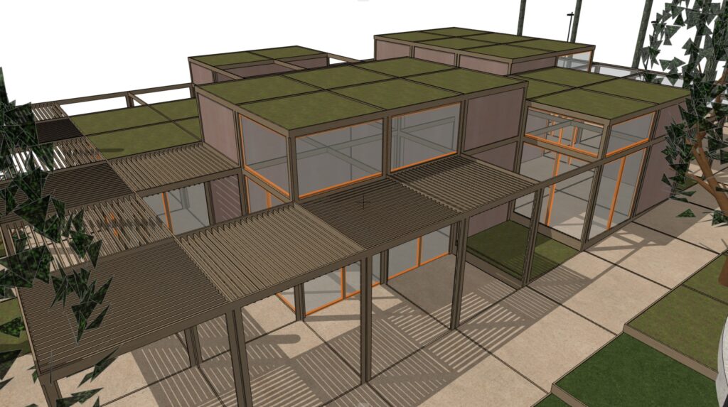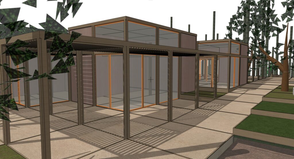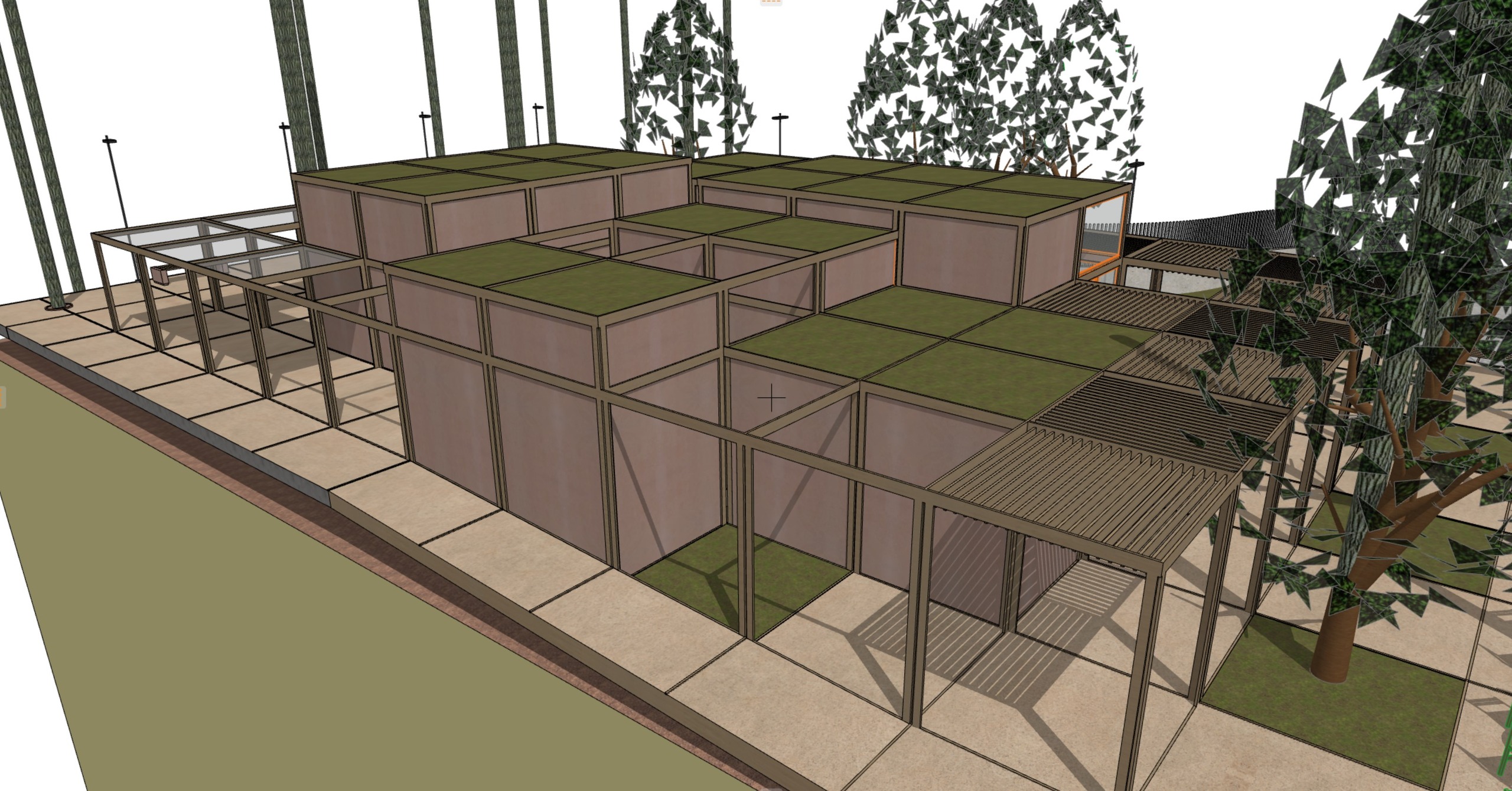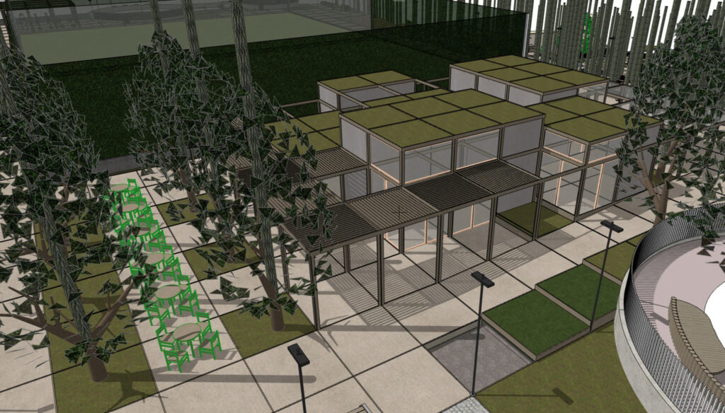 Η μελέτη αφορά τον προσδιορισμό των ξύλινων διατομών Ισόγειων κλειστών χώρων, τα οποία προορίζονται για Δημόσια Χρήση (εστίαση, εκθέσεις κτλ.) και πρόκειται να κατασκευαστούν στην κορυφή του «Λόφου του Παιδιού», στο Γαλάτσι. Η ξύλινη πέργκολα που διατάσσεται πέριξ των κλειστών χώρων, επίσης αποτελεί αντικείμενο της μελέτης. Στις διατομές που μορφώνουν τους κλειστούς χώρους, ελήφθησαν υπ’ όψιν οι ελάχιστες διατομές για λόγους πυρασφαλείας. Οι σεισμικές δυνάμεις παραλαμβάνονται από επιλεγμένους χιαστί συνδέσμους ξυλείας, οι οποίοι τοποθετούνται σε τοίχους που δεν διαθέτουν ανοίγματα.