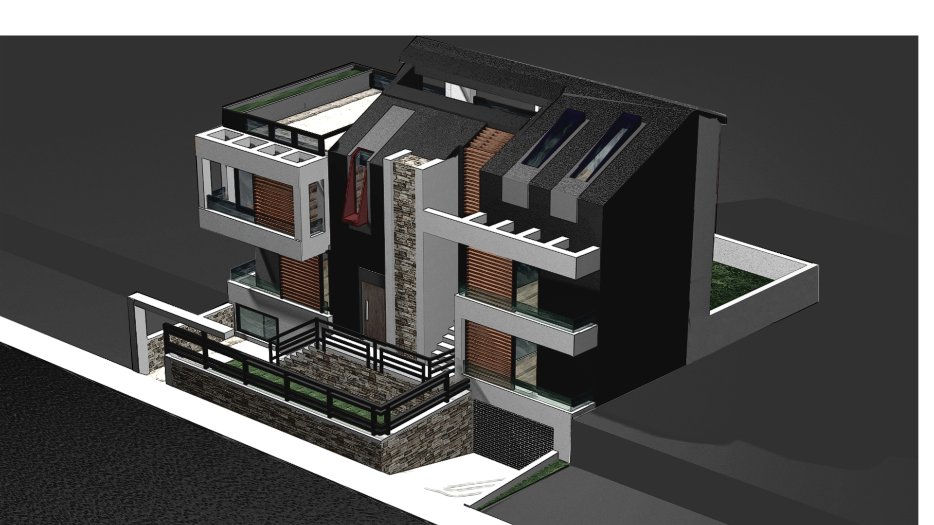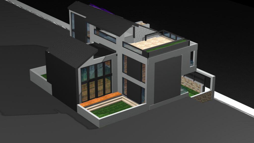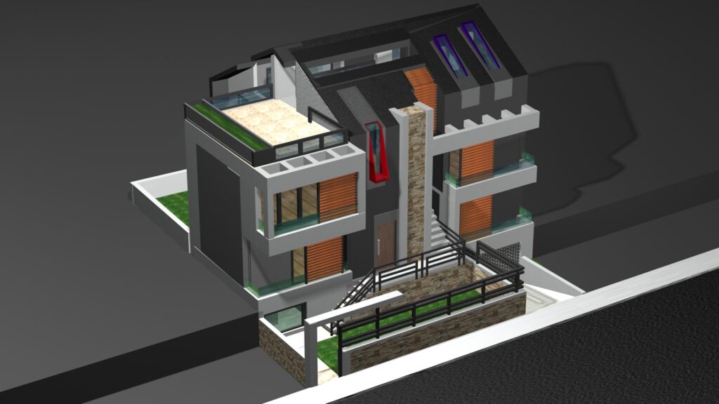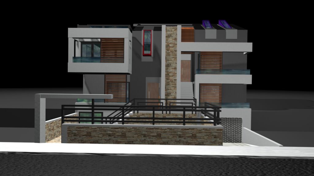 Η μελέτη αφορά διώροφη οικοδομή σε οικόπεδο στον Δήμο Γέρακα Αττικής. Η κατοικία αποτελείται δώμα το οποίο περιλαμβάνει ένα ημιυπαίθριο χώρο, Α΄ όροφο, Ισόγειο και Υπόγειο. Ο ημιυπαιθριος χώρος στο δώμα καθώς και τμήμα της οροφής του ορόφου στεγάζονται από κεκλιμένες πλάκες σκυροδέματος στις οποίες τοποθετείται επικάλυψη με κεραμίδια.