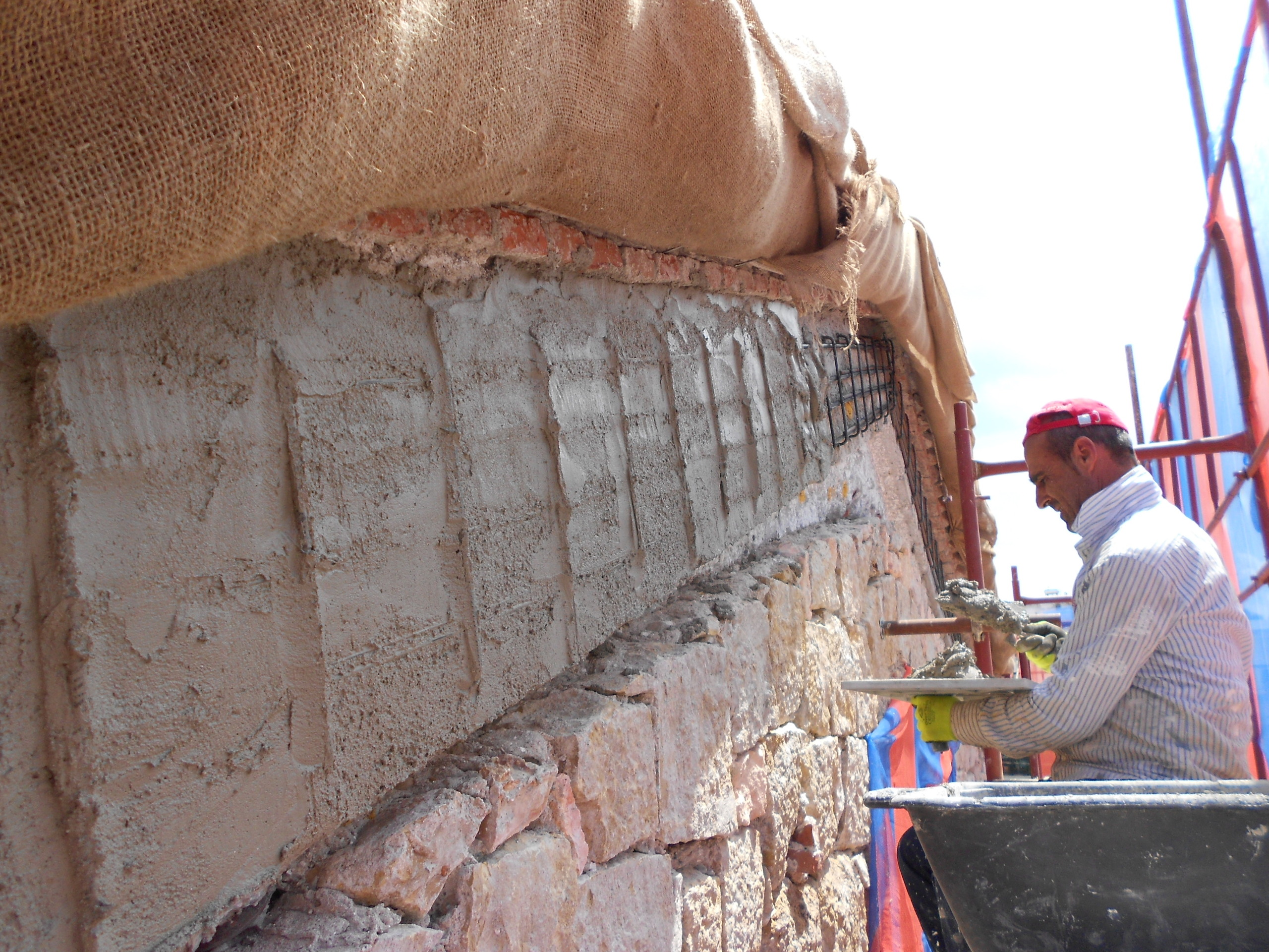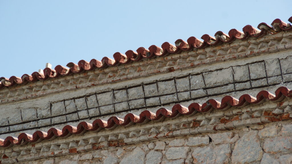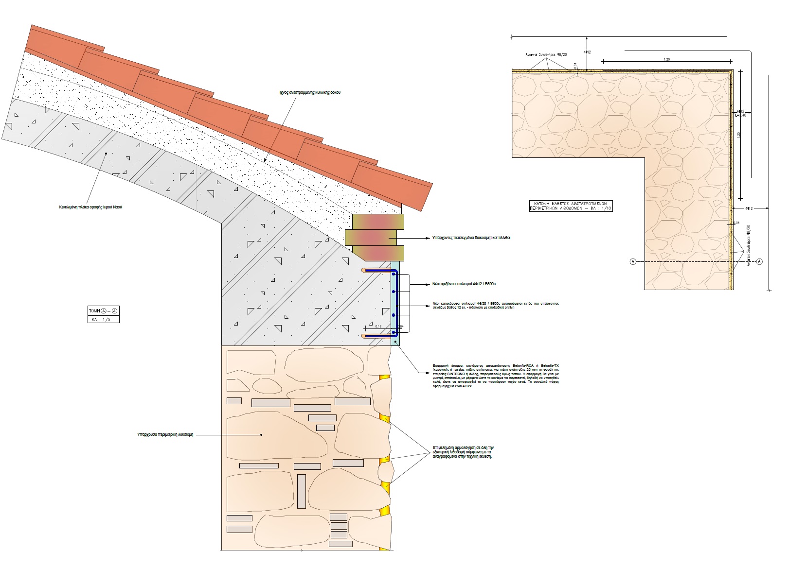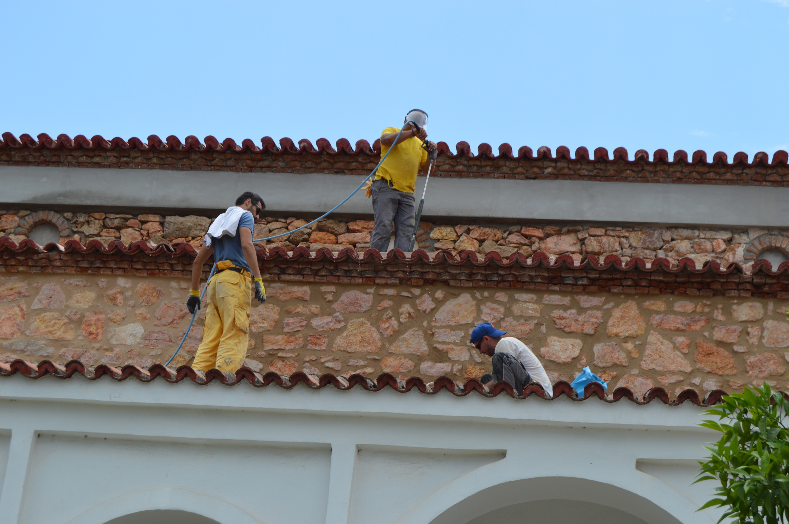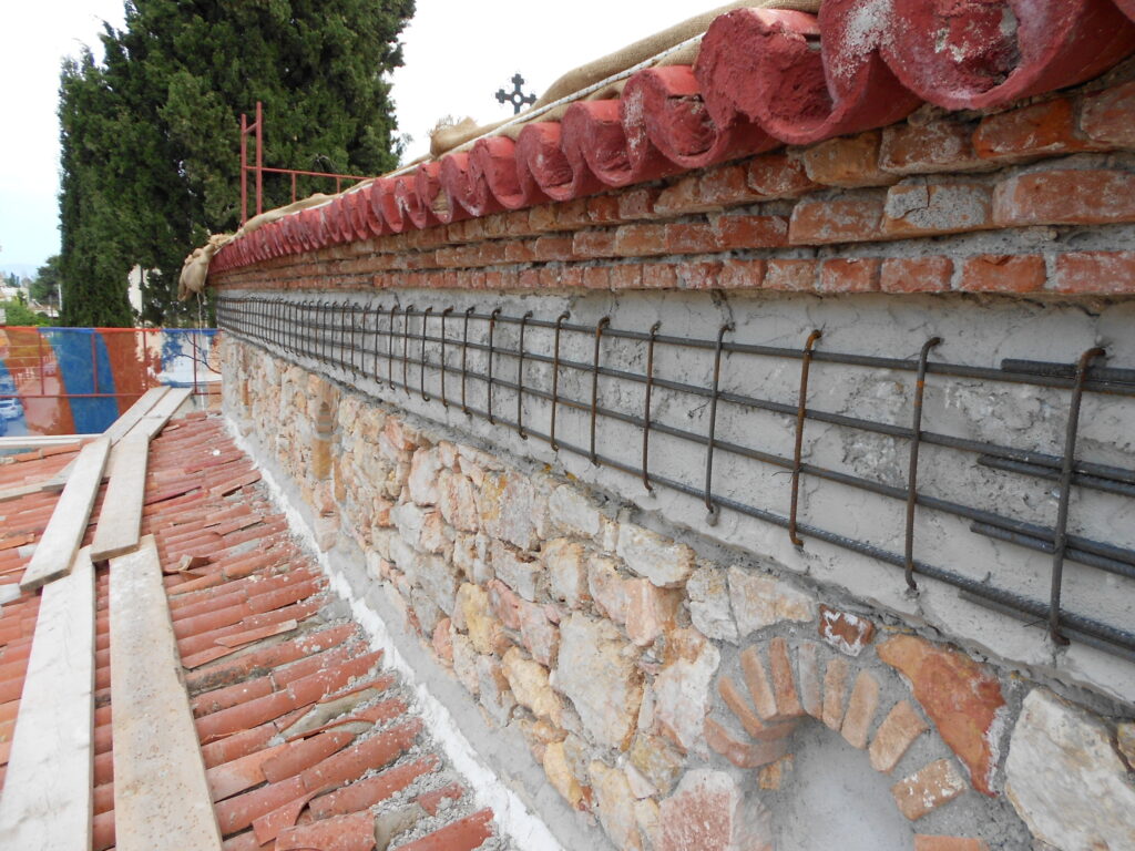 Η μελέτη αφορά την επισκευή και την ενίσχυση κυρίως του σενάζ (από οπλισμένο σκυρόδεμα) στο οποίο απολήγει η τοξωτή πλάκα στέγης του Ιερού Ναού, του οποίου ο κύριος φέρων οργανισμός αποτελείται περιμετρικά από φέρουσα τοιχοποιία και εσωτερικά από κυκλικά υποστυλώματα επίσης οπλισμένου σκυροδέματος. Τα στατικά προβλήματα εστιάζονται στις έντονες οξειδώσεις των οριζόντιων διαμήκων ράβδων των οπλισμών καθώς και των συνδετήρων τους, οι οποίες με την σειρά τους έχουν οδηγήσει σε εκτινάξεις και αποκολλήσεις των επικαλύψεων σκυροδέματος. Πέρα από τις συμβατικές μεθόδους καθαρισμού με καθαίρεση όλων των χαλαρών – σαθρών στοιχείων σκυροδέματος, επιμελές τρίψιμο κτλ, εφαρμόζεται υγρός αναστολέας διάβρωσης, τοποθέτηση πρόσθετου οριζόντιου οπλισμού και αποκατάσταση της γεωμετρίας σκυροδέματος με εφαρμογή έτοιμου κονιάματος αποκατάστασης. Ακολουθεί το τελικό αρμολόγημα στις εξωτερικές όψεις του Ναού με έτοιμο προς χρήση κονίαμα, που παρασκευάζεται από φυσική υδραυλική άσβεστο (NHL). Όλα τα υλικά που χρησιμοποιήθηκαν είναι της εταιρείας SINTECNO.