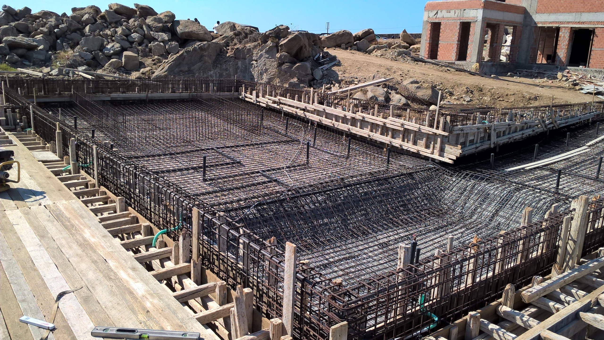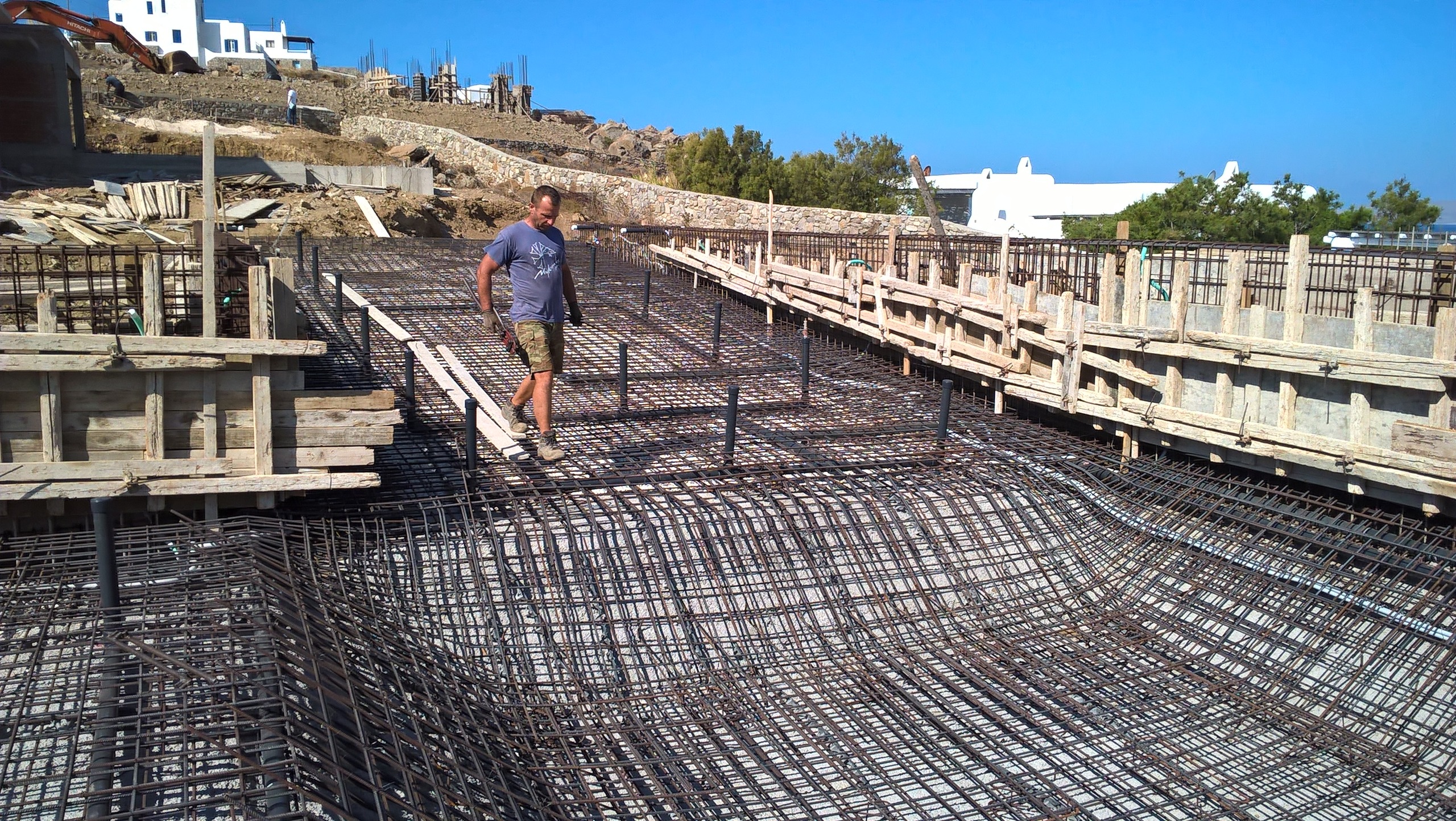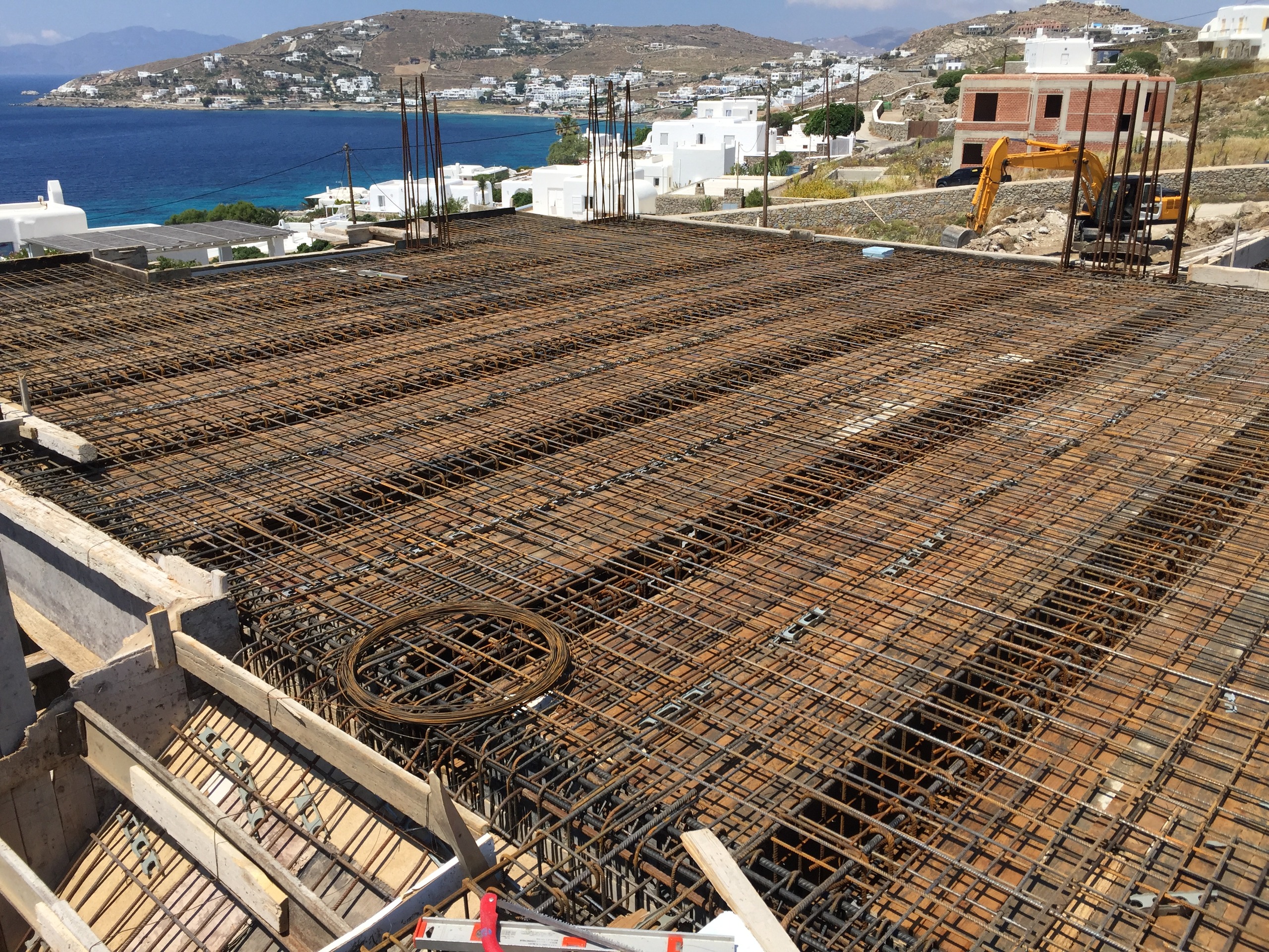 Η μελέτη αφορά την ανέγερση α) νέας διόροφης εξοχικής κατοικίας με Ισόγειο και περιορισμένης κατόψεως Α’ όροφο (δεν υπάρχουν υπόγειοι χώροι) και β) συγκροτήματος κολυμβητικής δεξαμενής μετά δεξαμενής υπερχείλισης, δεξαμενής ύδατος, δεξαμενής ομβρίων και μηχανοστασίου. Η κατοικία με τα παρακολούθηματά της κατασκευάστηκε στην θέση “Αλεομάνδρα» της νήσου Μυκόνου. Ο Φέρων Οργανισμός της είναι από οπλισμένο σκυρόδεμα. Το συγκρότημα της κολυμβητικής δεξαμενής, της δεξαμενής υπερχείλισης, της δεξαμενής ύδατος, της δεξαμενής ομβρίων και του μηχανοστασίου, χωρίζεται απο το κυρίως κτίριο της οικίας και αποτελεί ενιαίο φορέα, στατικά ανεξάρτητο από αυτήν.