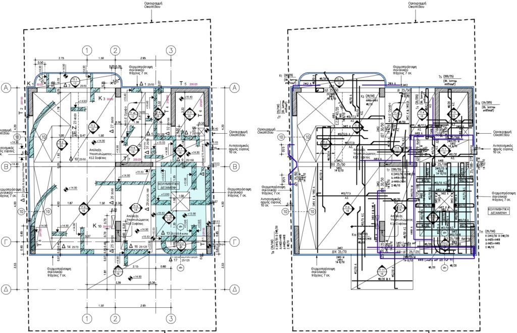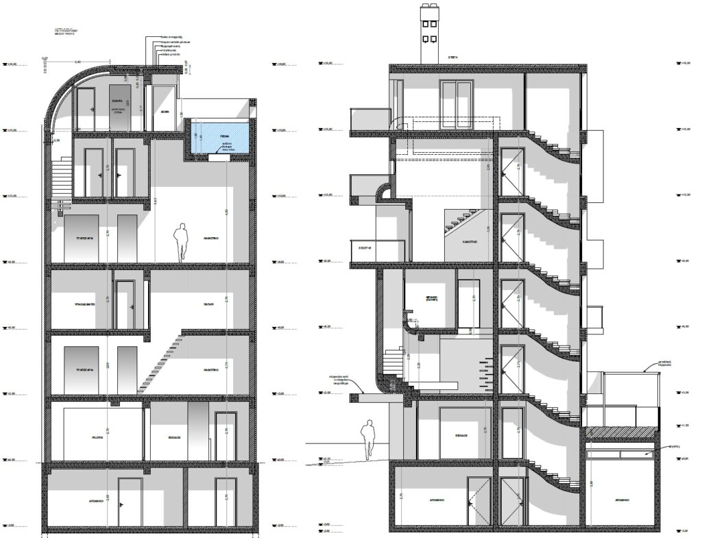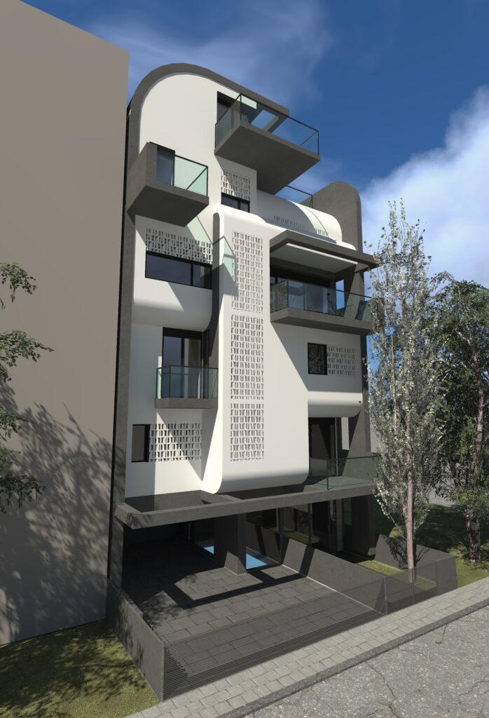 Η μελέτη αφορά την ανέγερση του Φέροντος Οργανισμού πενταώροφης πολυκατοικίας με πυλωτή και υπόγειο, στο Νέο Ψυχικό. Στον Ε’ Οροφο, προβλέπεται η κατασκευή κολυμβητικής δεξαμενής. Ο Φέρων Οργανισμός του κτιρίου είναι από οπλισμένο σκυρόδεμα. Προβλέφθηκαν οι κατάλληλοι αντισεισμικοί αρμοί σε σχέση με τα όμορα κατασκευασμένα κτίρια.