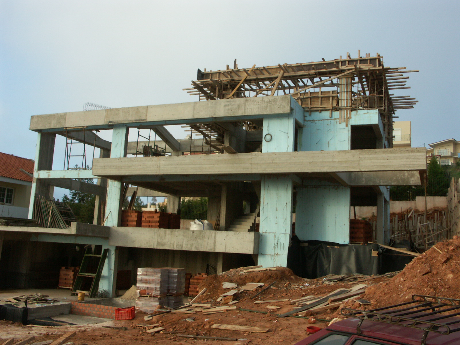 Η μελέτη αφορά τριώροφη κατοικία στον οικισμό Ντράφι – κοινότητος Πικερμίου. Ο Φέρων Οργανισμός του κτιρίου και της κολυμβητικής δεξαμενής είναι από οπλισμένο σκυρόδεμα. Ειδικά ο Φέρων Οργανισμός του πρώτου επιπέδου (με χρήση κυρίως υπογείου garage), επειδή καταλαμβάνει μεγάλη έκταση, διότι περιλαμβάνει και την κολυμβητική δεξαμενή μαζί με την δεξαμενή υπερχείλισης καθώς και τους τοίχους αντιστήριξης της ράμπας εισόδου των οχημάτων στον χώρο σταθμεύσεως, αποφασίστηκε να διαχωριστεί στατικά και κατασκευαστικά σε δύο επί μέρους ανεξάρτητους φορείς με κοινή όμως θεμελίωση. Η κάλυψη της οροφής των ανώτατων επιπέδων γίνεται με κεραμοσκεπή η οποία εδράζεται σε ξύλινα ζευκτά.