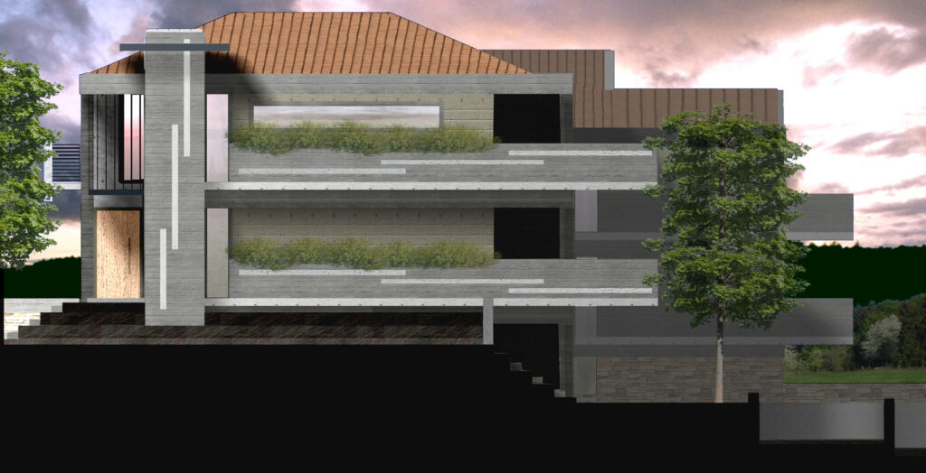 Η μελέτη αφορά κτίριο συγκροτήματος κατοικιών στην Παλαιά Πεντέλη Αττικής. Το κτίριο αποτελείται από δύο υπόγεια, ισόγειο και Α’ όροφο, υπάρχει δε γενικευμένη επικάλυψη με κεραμοσκεπή και τοπικής έκτασης επίπεδο καθώς και κεκλιμένο δώμα. Εντός του οικοπέδου και ως στατικά ανεξάρτητος φορέας, υπάρχει κολυμβητική δεξαμενή, με το αντίστοιχο μηχανοστάσιο και δεξαμενή υπερχείλισης. Ο Φέρων Οργανισμός του κτιρίου, της κολυμβητικής δεξαμενής και των τοιχωμάτων αντιστήριξης του περιβάλλοντος χώρου είναι από οπλισμένο σκυρόδεμα.