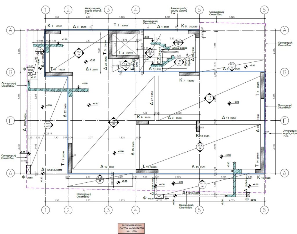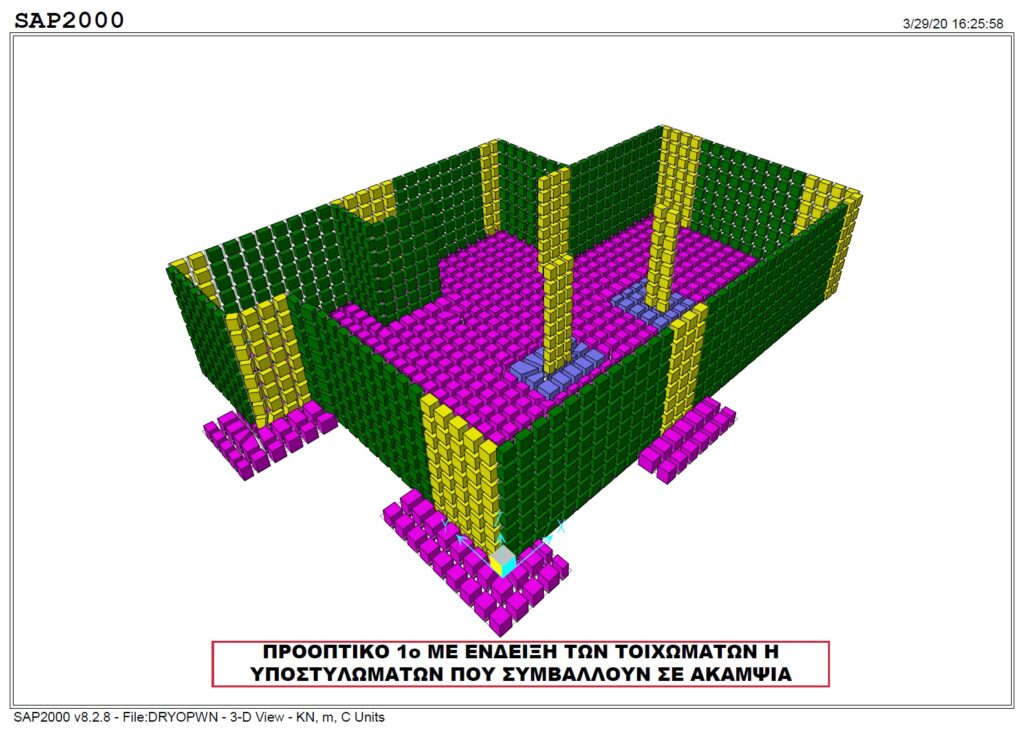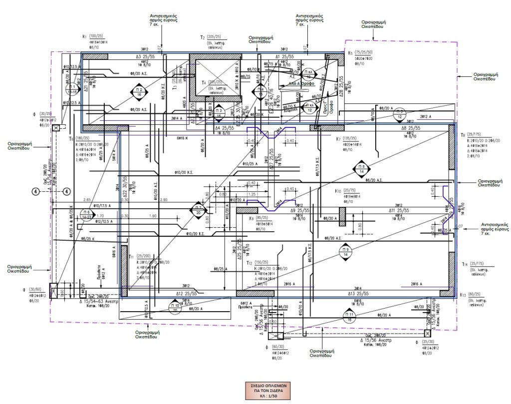 Η μελέτη αφορά την ανέγερση του Φέροντος Οργανισμού από οπλισμένο σκυρόδεμα νέας τριόροφης πολυκατοικίας με πυλωτή και υπόγειο, στα Ανω Πετράλωνα Αττικής. Η θεμελίωση του κτιρίου γίνεται με πλάκα γενικής κοιτόστρωσης.