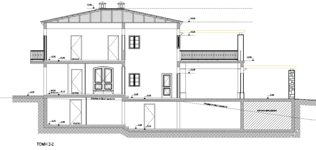 Η μελέτη αφορά διόροφη εξοχική κατοικία με υπόγειο που κατασκευάστηκε σε οικόπεδο στη Πετροθάλασσα Ερμιόνης Αργολίδας. Ο Φέρων Οργανισμός του κτιρίου είναι από οπλισμένο σκυρόδεμα.