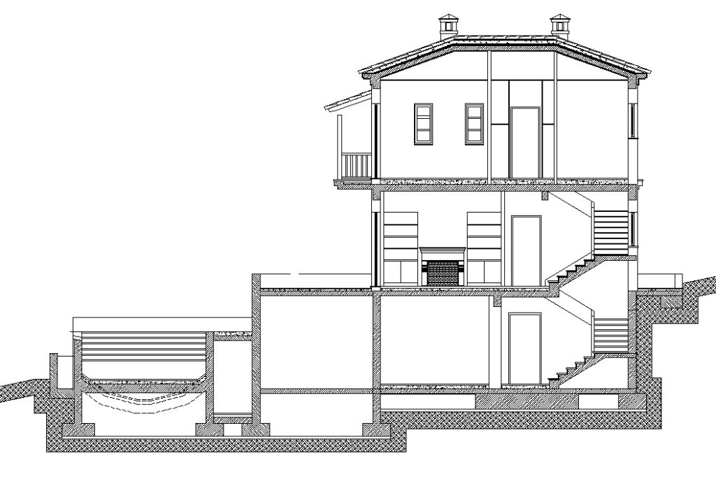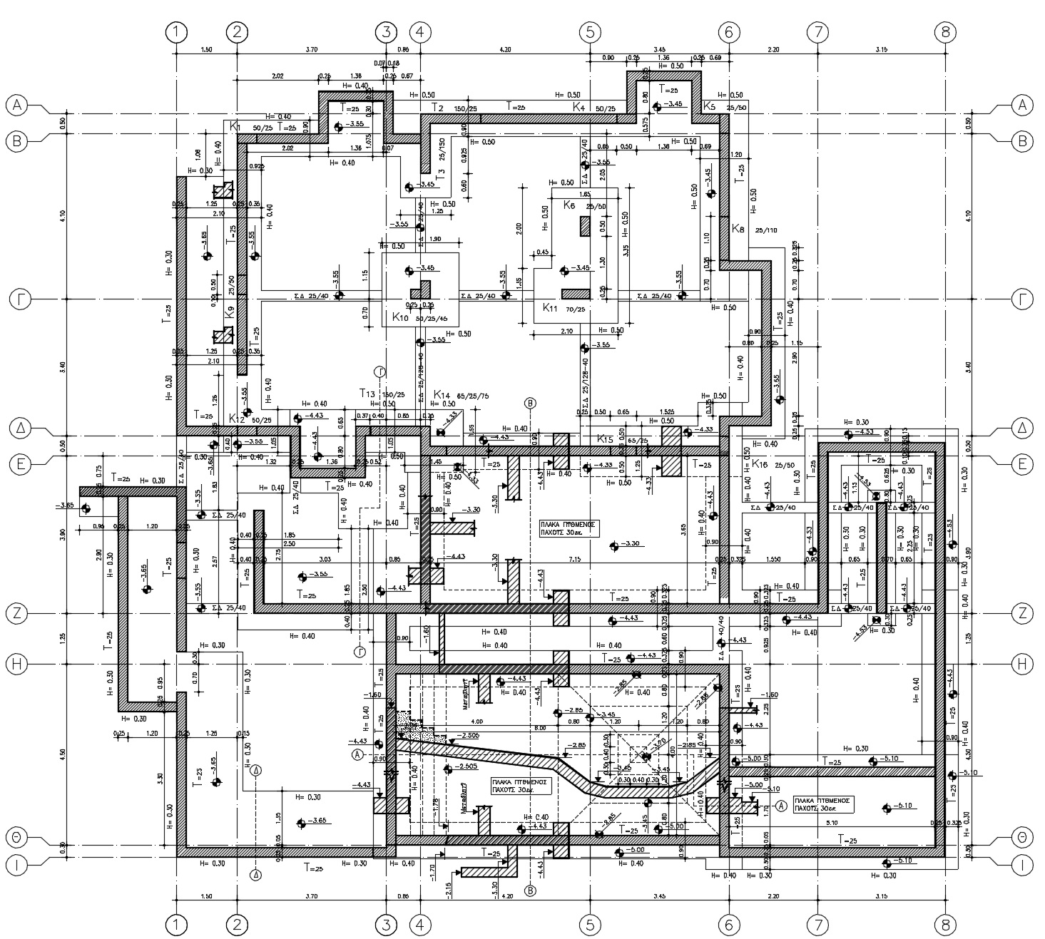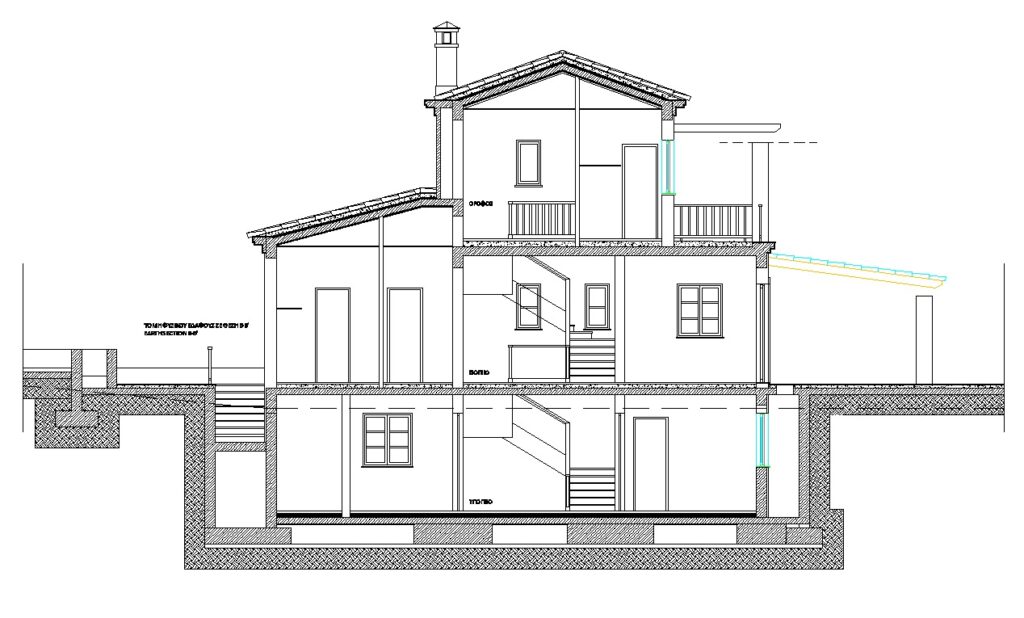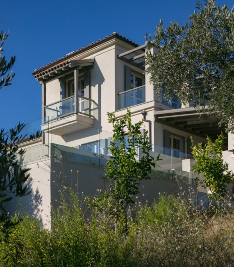 Η μελέτη αφορά εξοχική κατοικία που κατασκευάστηκε στην θέση «Καλύβια» της νήσου Σκιάθου. Ο Φέρων Οργανισμός της είναι από οπλισμένο σκυρόδεμα. Η κατοικία αποτελείται από χώρους Υπογείου, Ισογείου και Α’ ορόφου. Περιλαμβάνεται επίσης στο αντικείμενο της μελέτης, η κολυμβητική δεξαμενή μετά του μηχανοστασίου και της δεξαμενής υπερχείλισής της καθώς και η δεξαμενή ομβρίων.
