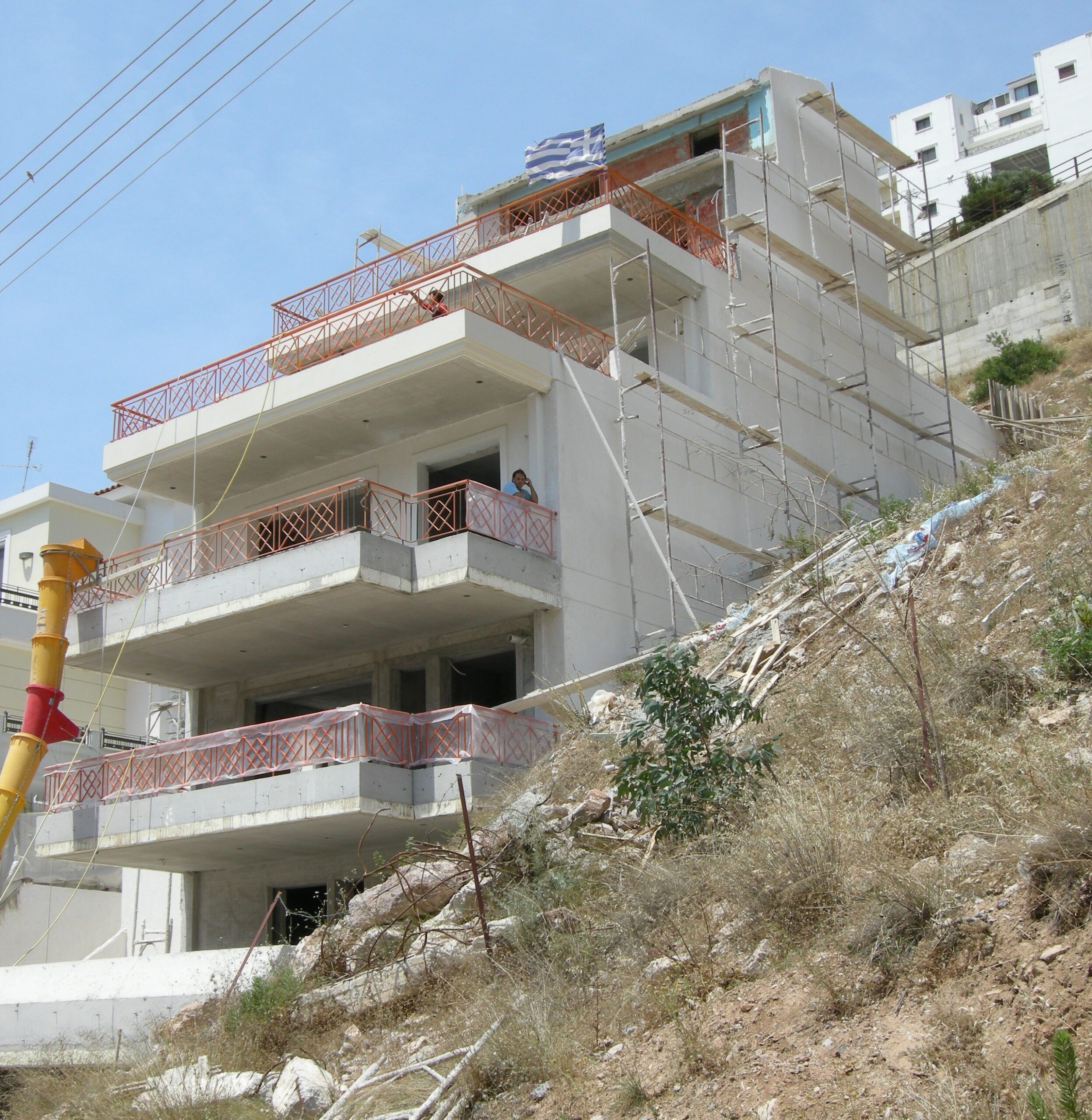Η μελέτη αφορά την ανέγερση του Φέροντος Οργανισμού από οπλισμένο σκυρόδεμα νέου τριώροφου συγκροτήματος κατοικιών με υπόγεια και στέγη που κατασκευάστηκε σε εντόνως επικλινές οικόπεδο, στην Ανω Βούλα. Συνολικά, στο κτίριο υπάρχουν 6 επίπεδα:
